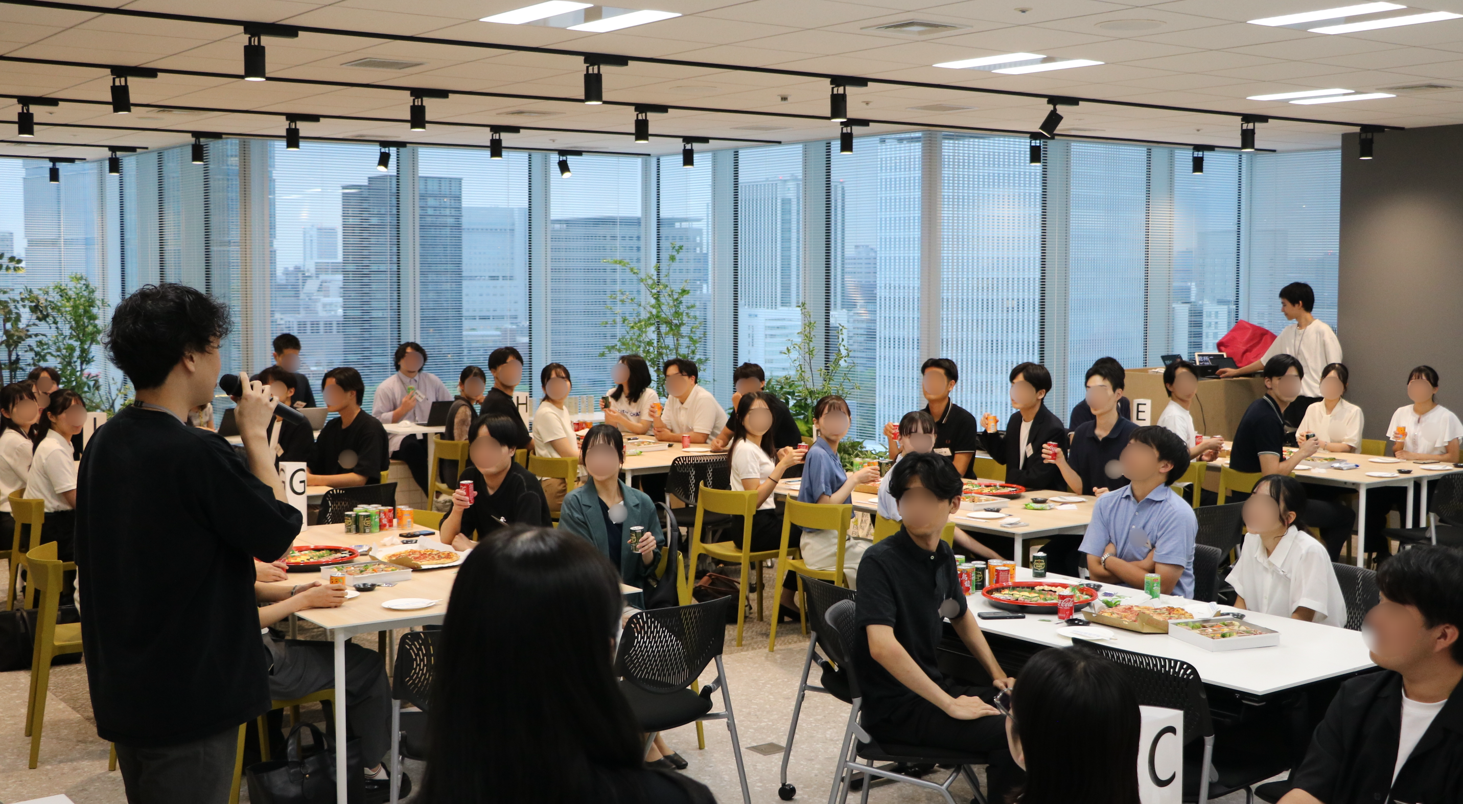 最後は懇親会を実施し、共に全力を尽くした仲間と称え合いながら3日間を振りつつ、途中からは弊社の若手社員も加わり、就活やキャリアの相談、実際の働き方についての質問など、交流を深める時間となりました。