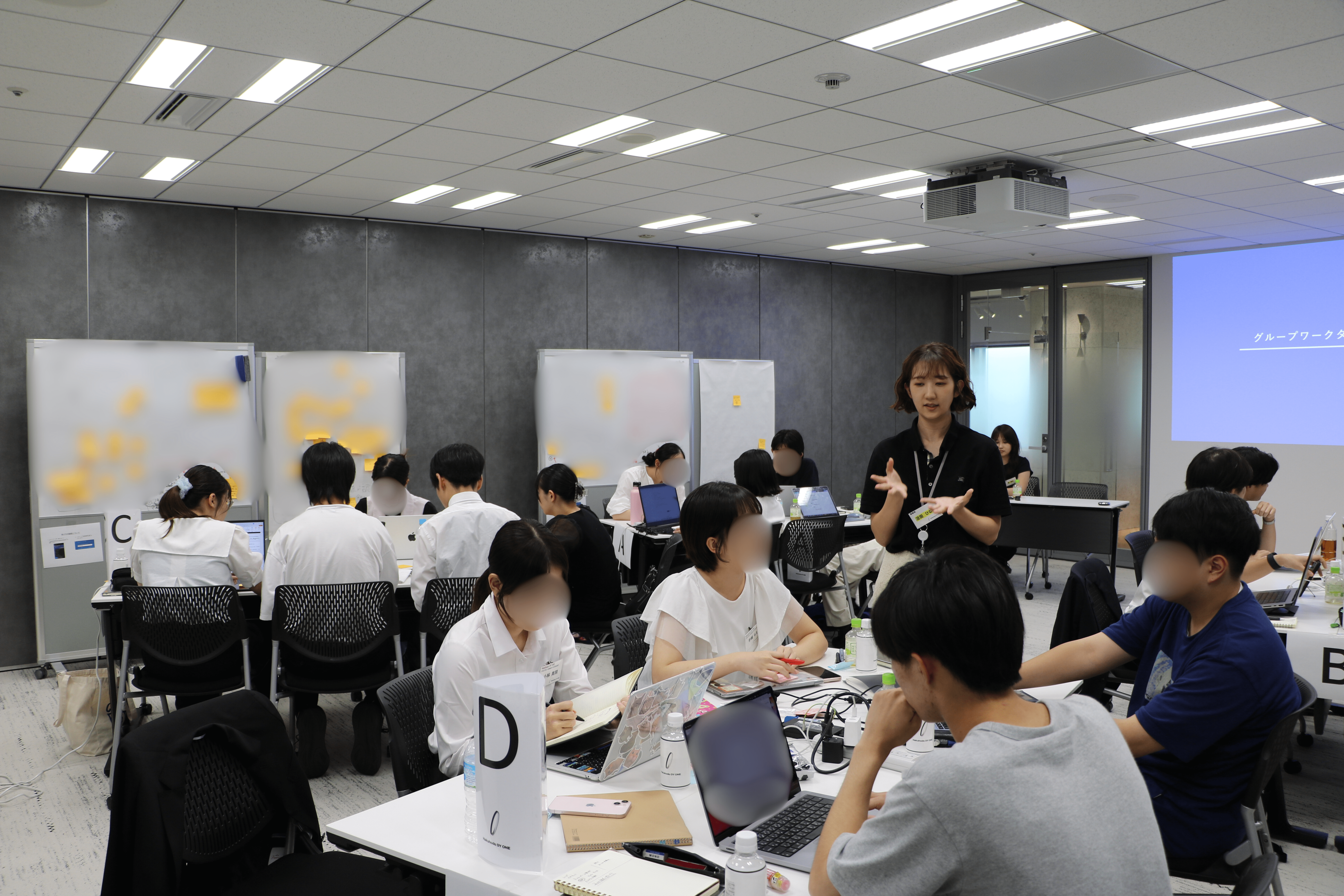 クライアント課題を想定したお題に対して、チームでアイディアを出し合い試行錯誤しながら、最終日まで高い熱量を持って取り組んでいただきました。また、各グループに現場社員1名がメンターとしてつき、社員同席ワークでは中間発表を受けて、実務視点から率直なフィードバックをおこないました。